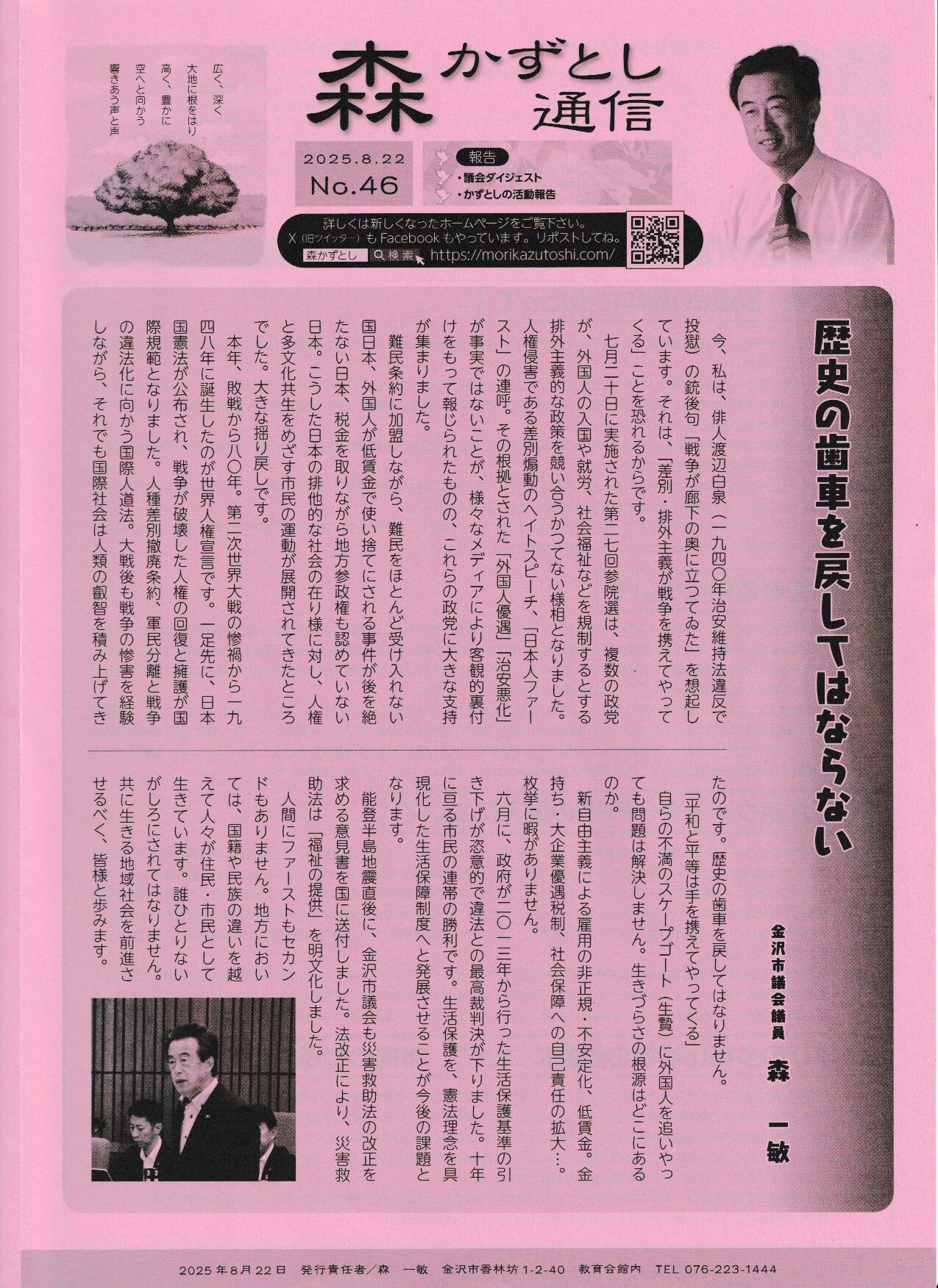 2025年9月28日 mori-kazutoshi 森かずとし公式通信第46号発行 森かずとし公式通信第46号を発行しました 2025年上半期の活動を報告する第46号通信を掲載します。ご高覧をお願いいたします。 ーPDF版はこちらからー