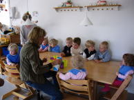 このファミリーグループは、毎週木曜日は一日中活動することにしている。一週間単位でプロジェクトにとりくむこともある。例えばオリンピック遊び、カラープロジェクト(曜日で色を決めてその色の服を着てくる)などである。 |