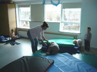 大勢一括りでは無理があるので、同年齢少人数のグループに分けて指導する。指導を受けるグループはローテーション交代し、どの子も受けられるようになっている。