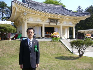 修得寺にて朴さん、盛本、若林両県議と。 |