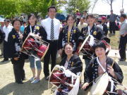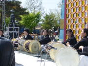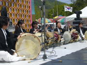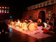 | 李光壽院長のケンガリに乗って、民族音楽院のメンバーとも輪になって |