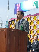 団を代表して盛本県議が日韓の恒久平和を誓うスピーチ |