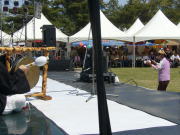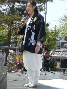 文化祭典二日目の演奏を前に、ハンヌリの自己紹介をするリーダーの北嶋由記さん |