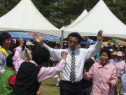 私も、いつの間にか地元の皆さんと一緒に踊り出していました!(撮影は、崔銀淑李光壽夫人) |