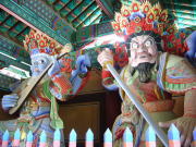 何の祭りだったか、韓国らしい原色のぼんぼりが下がる境内に、歴史を感じさせる遺構が。 |