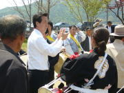 | 文化祭典会場で本部行事開催。韓国式葬列にユン・ボンギルの肖像 |